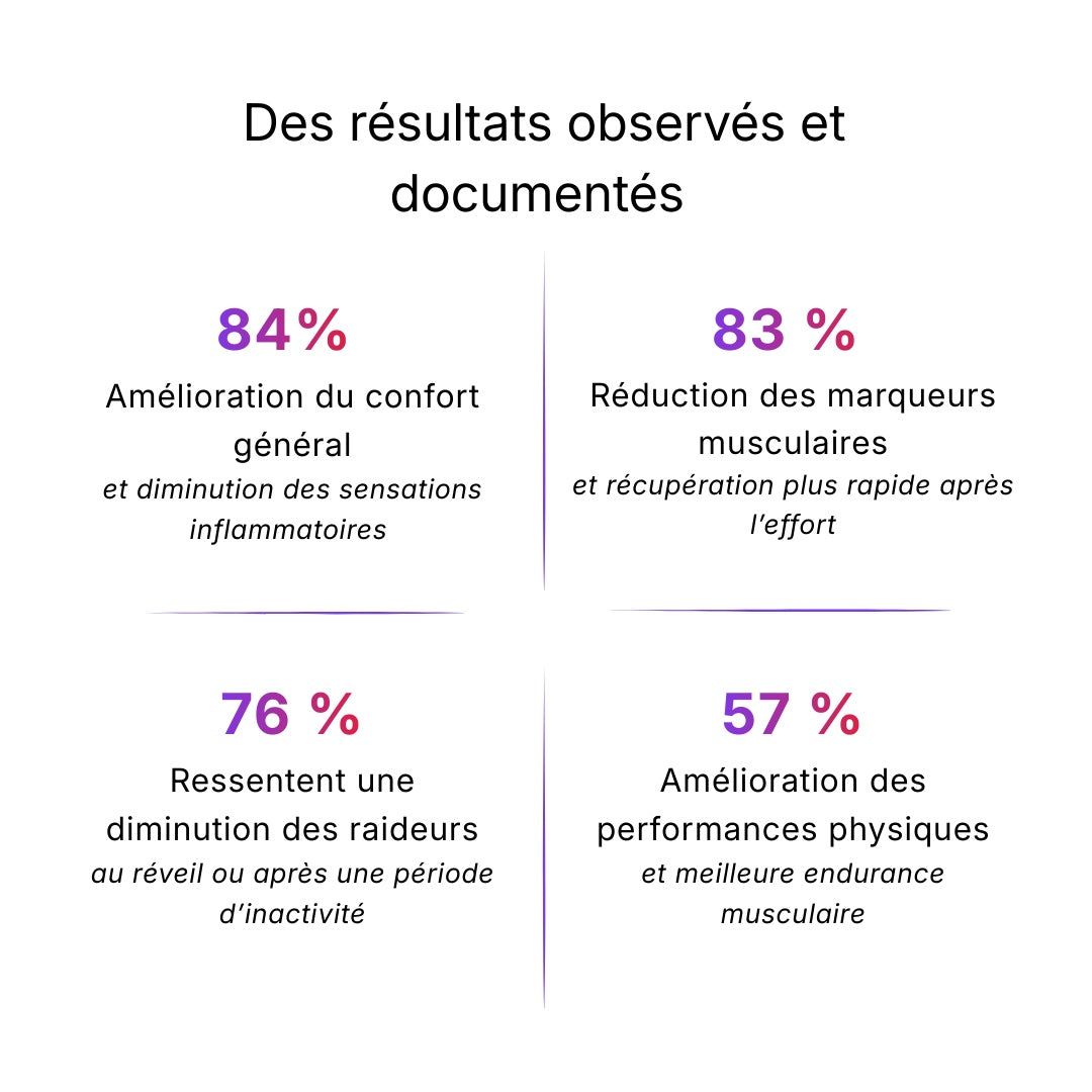 Avec une utilisation régulière, de nombreux utilisateurs observent une meilleure mobilité Les zones sollicitées deviennent plus souples, les mouvements plus fluides, et le confort s’améliore progressivement au quotidien.